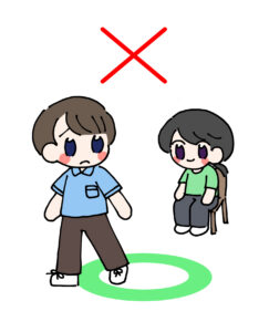 カメラの画角内に入り、円形の奥側に、左右どちらかを向いて立ちます。