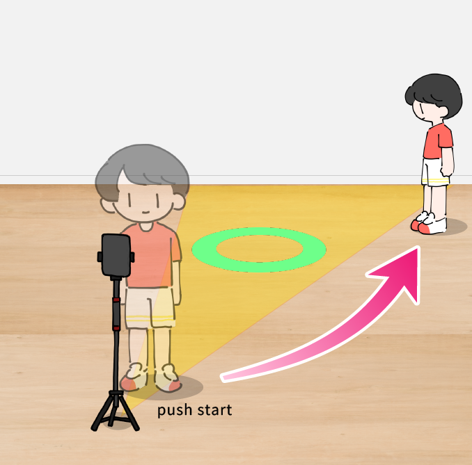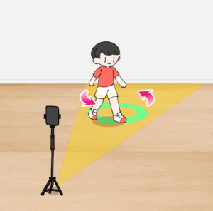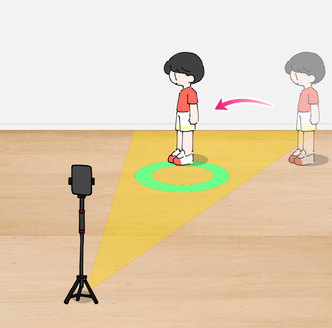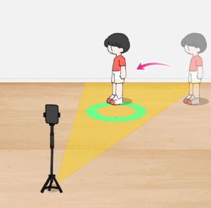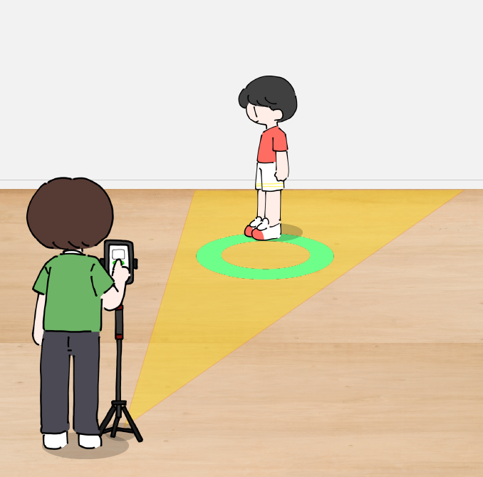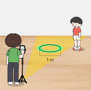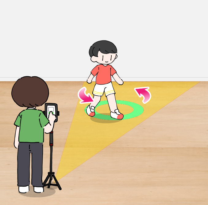 被検者は、カメラから見て円の奥側に立ち、左または右の方向を向いてください。