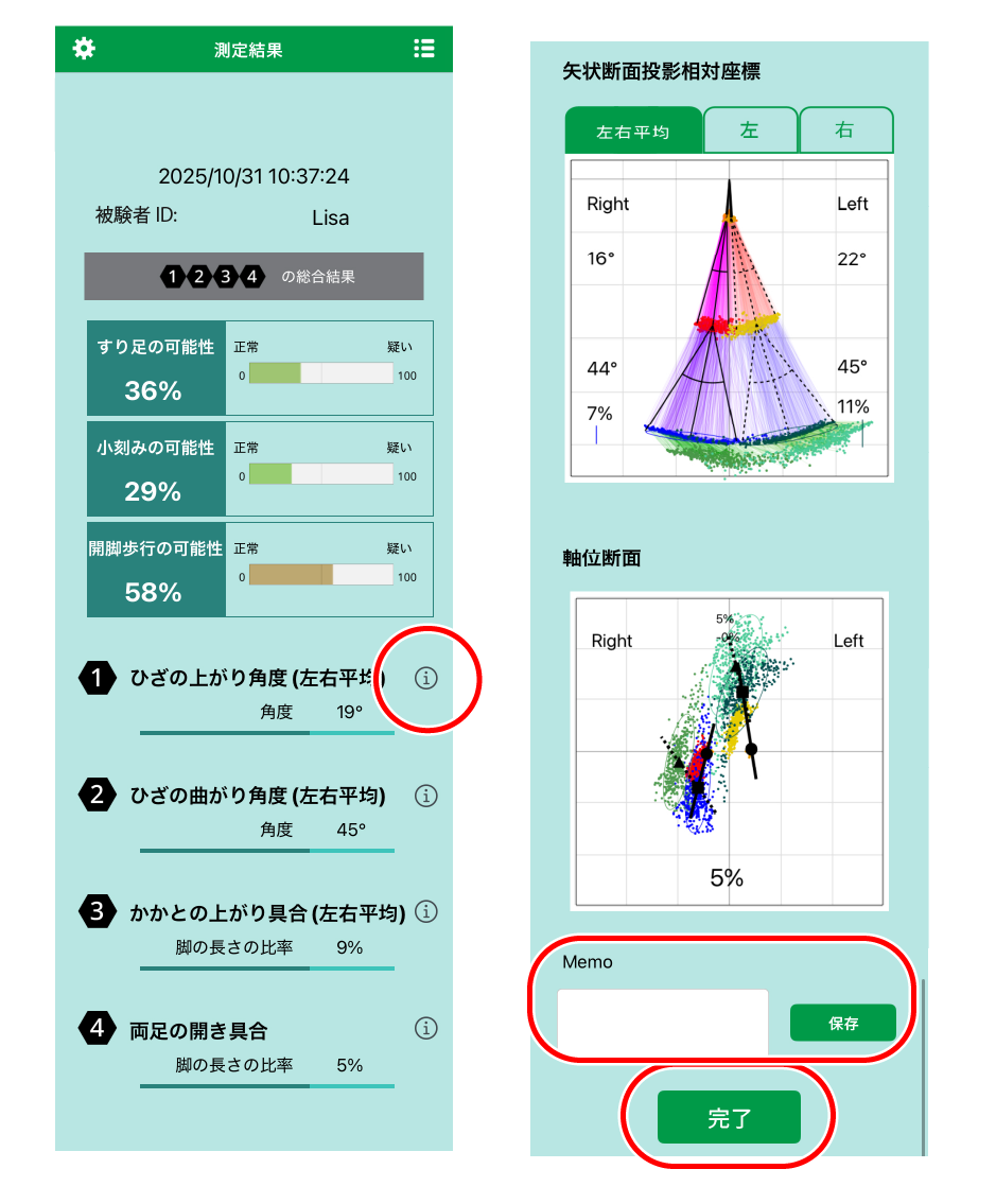 解析結果の各項目についての解説は[i]マークをタップして確認することができます。