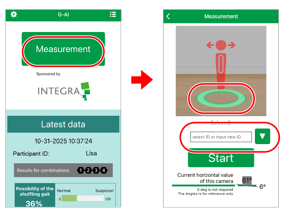 The operator taps “Start Measurement.”