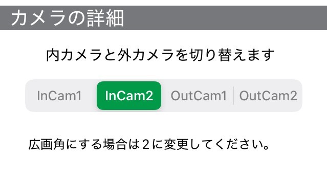 内カメラと外カメラを切り替えます。広画角にする場合は2に変更してください。