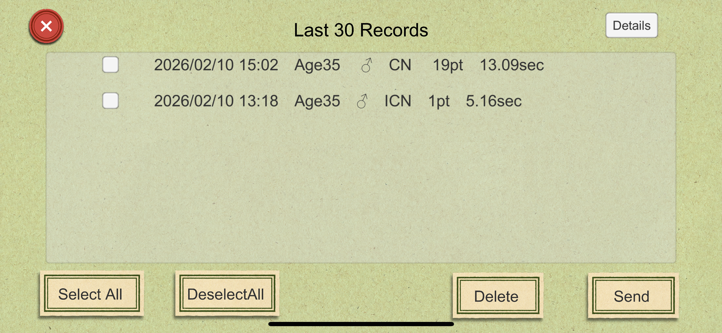 - Result data will store measurement date / time, age, gender, type of task, time, score li>