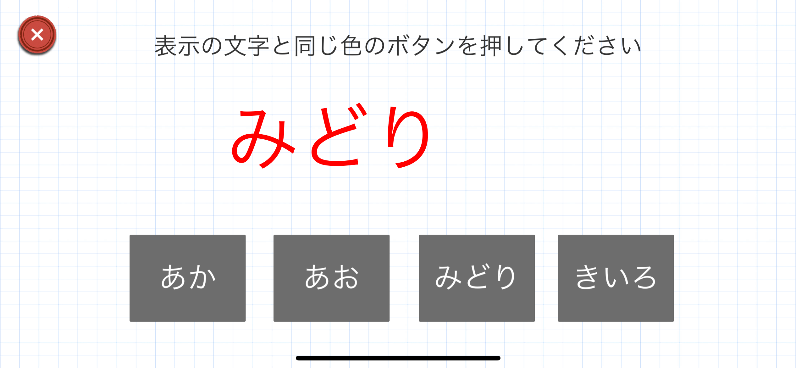 2つ目の課題では、文字の意味と文字を描いているインクの色が一致しない場合でも、文字の意味ではなく「描かれているインクの色」を答えてください(Incongruent Color Naming課題)。